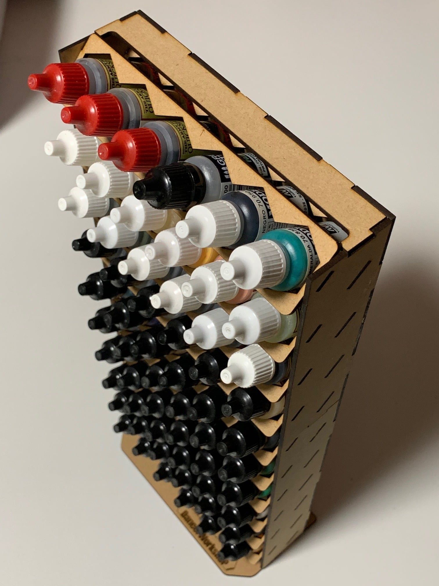 ファレホ、AMMO、AK、アーミーペインター、スケール75、グリーンスタッフワールド等各社のボトルに対応しております。